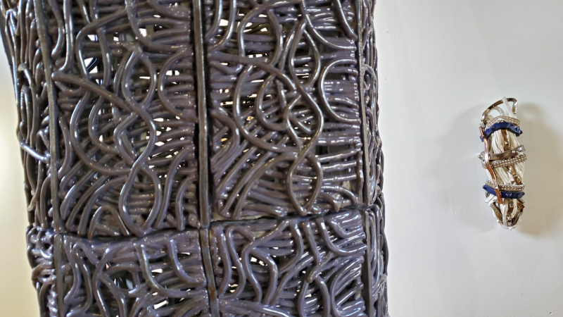 Fundstücke Atelier Cité. Das surrealistische Prinzip, 2 Ebenen, die nichts miteinander zu tun haben, zu verbinden. In diesem Fall den Schuh mit der Gardinenkordel. |