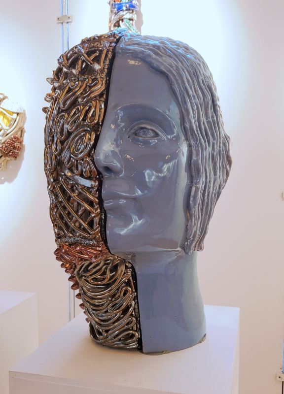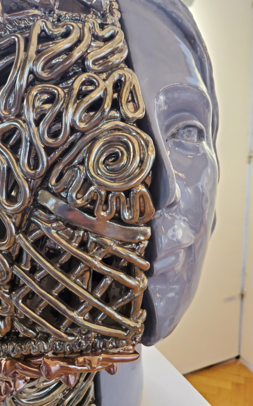 Pumpssohle hochgeschäumt auf dem Weg zur Maske. Im Musée Quai d'Orsay gibt es gerade eine Ausstellung zu dem Thema der Maske. |